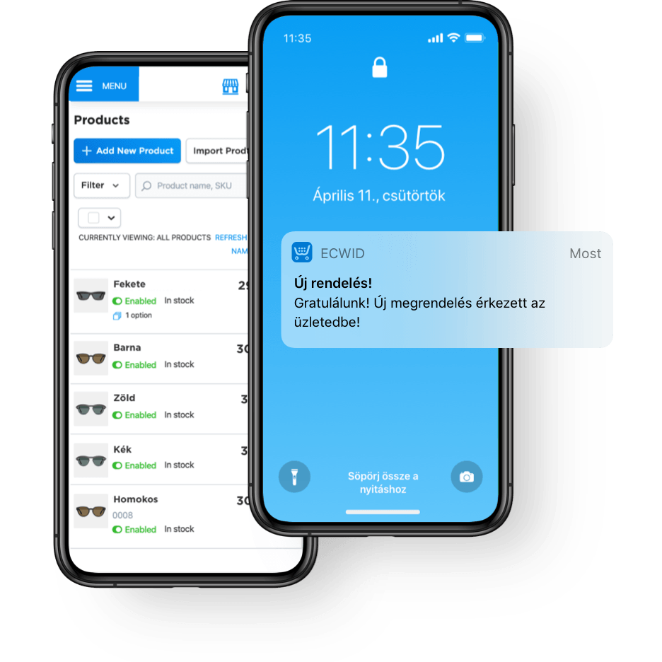 Ha egyszer beállítod az Ecwid áruházat, utána könnyen szinkronizálhatod és értékesíthetsz weboldalon, közösségi médián, vagy az Amazonhoz hasonló piactereken keersztül, illetve személyesen. Kezdd el az egyikkel, vagy próbáld ki mindegyiket.